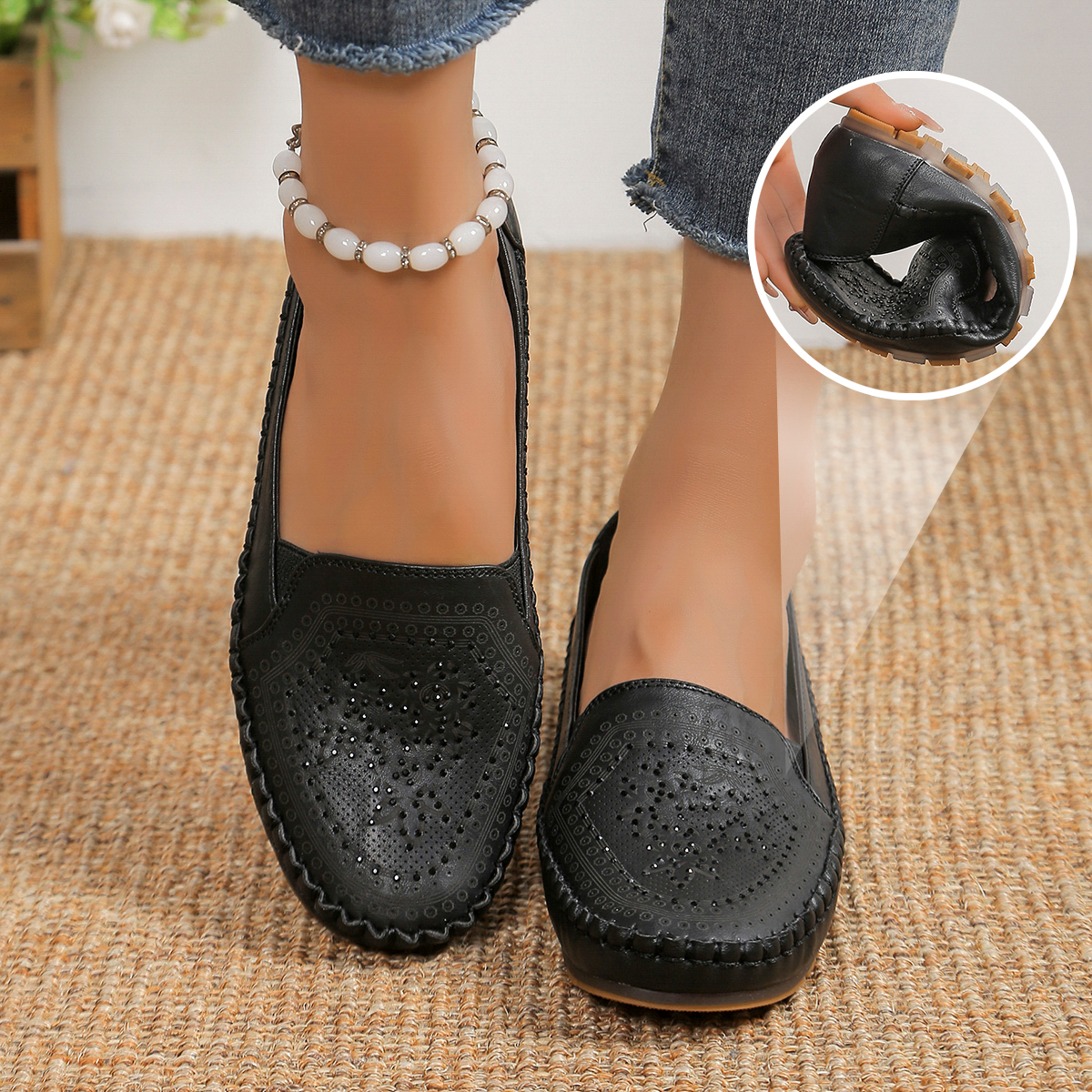 Summer Vintage Hollow-Out Flats for Women Ballet Flats Shoes Women’s Comfortable Dress Shoes Slip on Shoes Women Black Flats Round Toe PU Leather Flats