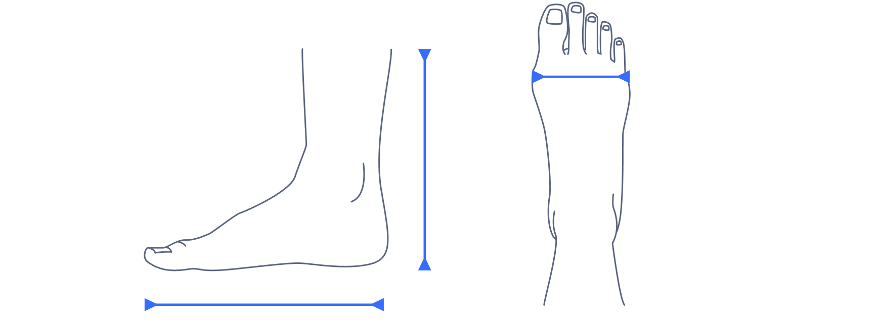 - Add 3-5 mm to the measured length (important for toe space)